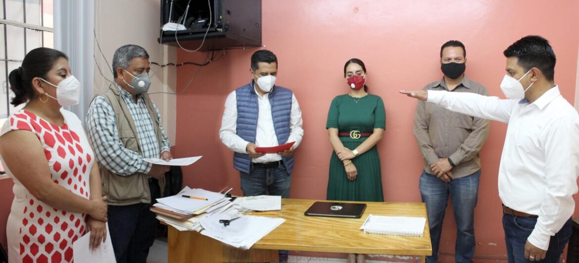 Teocelo, Veracruz, martes 13 octubre 2020.- Con la presencia del alcalde Mario Antonio Chama Díaz, la síndica, Zayra del Carmen Martínez Andrade y la Presidenta del DIF Municipal, Mara Yamileth Chama Villa, se llevó a cabo el nombramiento de Víctor Hugo Zavaleta Anell, quien a partir de este martes fungirá como el titular del Registro Civil en Teocelo.