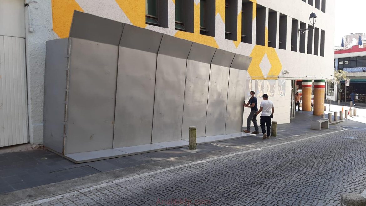 Xalapa Enríquez, Ver., septiembre 28 del 2021.- Debido a la marcha que realizarán el día de hoy diferentes grupos feministas los comercios del centro y las iglesias, al igual que las dependencias de gobierno blindaron sus puertas y ventanas para evitar ser vandalizadas.