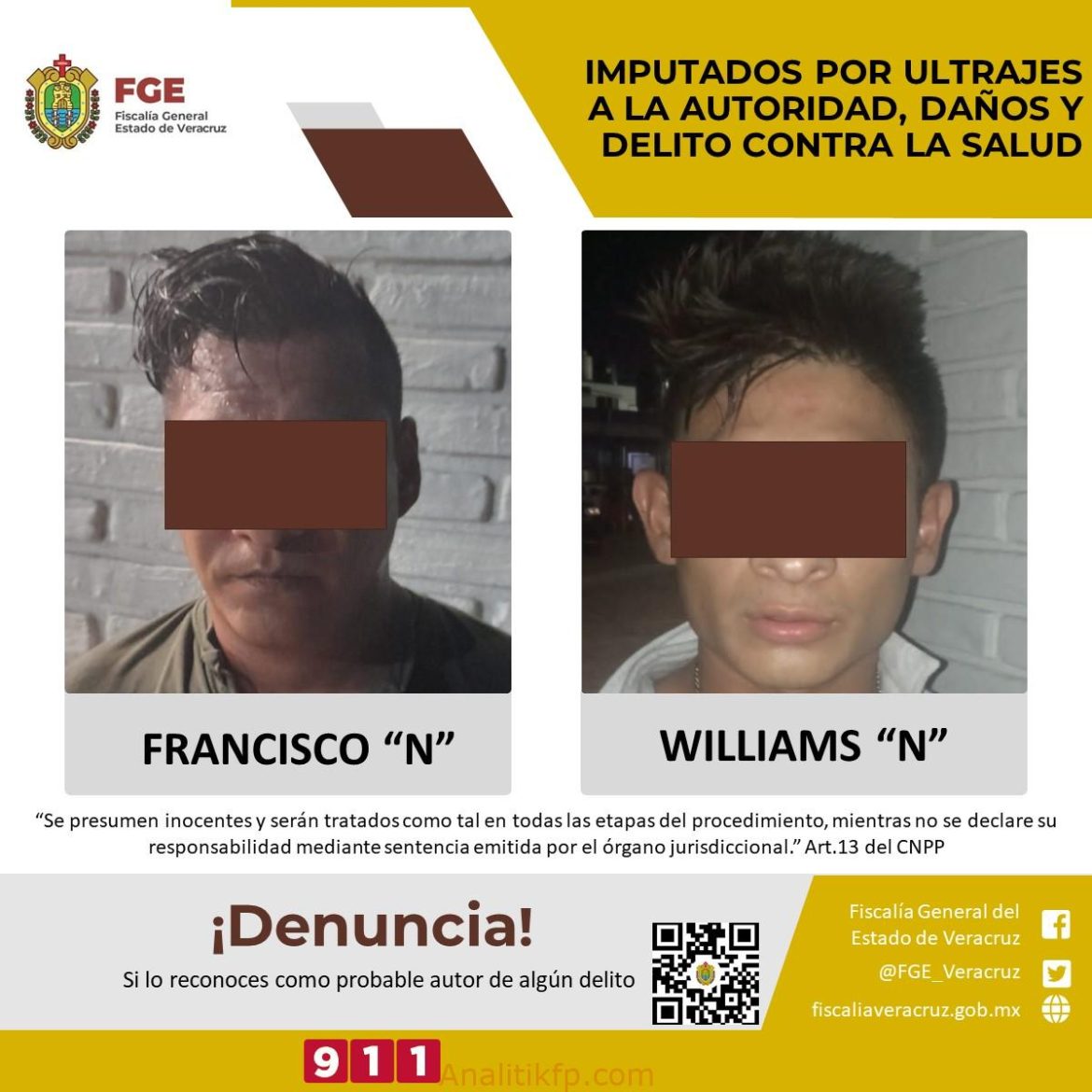 A los ahora imputados se le investiga por hechos constitutivos de los delitos de ultrajes a la autoridad, daños y delito contra la salud, hechos suscitados en la calle Lázaro Cárdenas de la ciudad de Poza Rica el pasado 16 de octubre del año en curso.