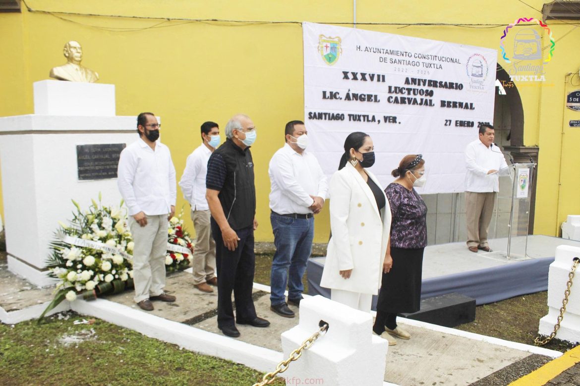 Santiago Tuxtla, Ver., enero 27 del 2022.- La Presidenta Municipal de Santiago Tuxtla, Profa. Kristel Hernández Topete acompañada del Secretario del Ayuntamiento, Ing. Antonio Bencomo Victorio y los regidores Andrea Coto Gapi, Rafael Gracia Toga y Pilar Fernández, asistió a la conmemoración del XXXVII Aniversario Luctuoso del Lic. Ángel Carvajal Bernal, personaje ilustre nacido en este hermoso municipio, donde estuvieron presentes familiares y amigos cercanos, así como el personal directivo de la Esc. Prim. “Lic. Angel Carvajal Bernal” y Esc. Prim. “Juana Bernal de Carvajal” de esta ciudad y personal del Ayuntamiento que asistieron.
