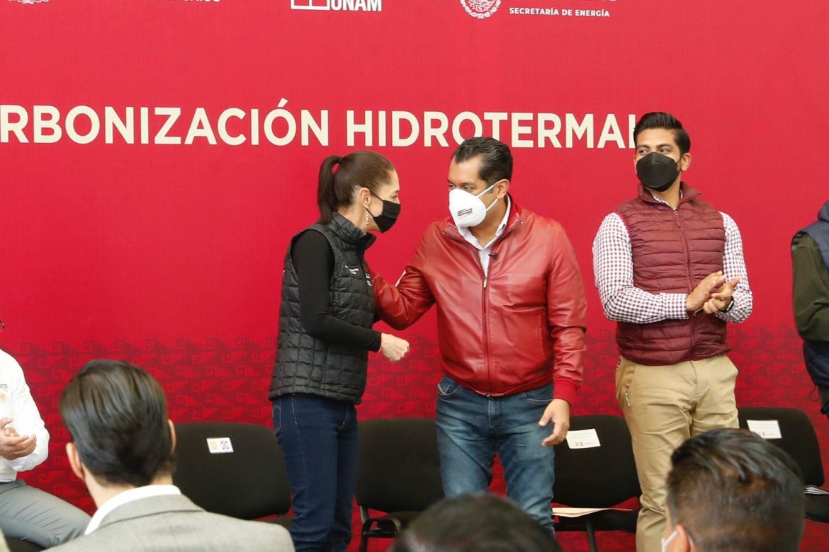 Ciudad de México, 29 de enero de 2022.- El presidente de la Cámara de Diputados, el veracruzano Sergio Gutiérrez Luna, acompañó a la jefa de Gobierno de la Ciudad de México, Claudia Sheinbaum Pardo, a la supervisión de la Planta de Carbonización Hidrotermal en el Bordo Poniente del Valle de México que convierte basura orgánica en electricidad y carbón vegetal.