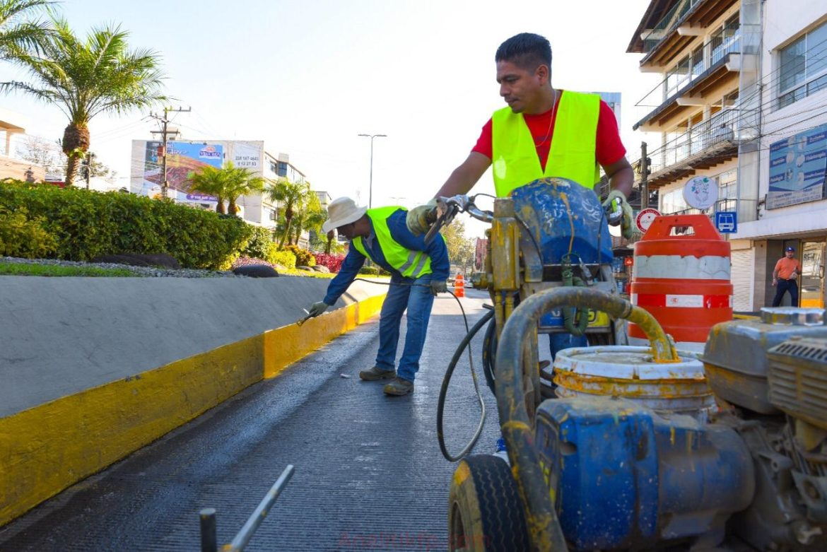Xalapa, Ver.- Para mantener una buena imagen en las principales vías de acceso y comunicación del municipio, personal del Ayuntamiento trabaja en el remozamiento de puentes, barandales y banquetas en las avenidas Rafael Murillo Vidal y Circuito Presidentes.