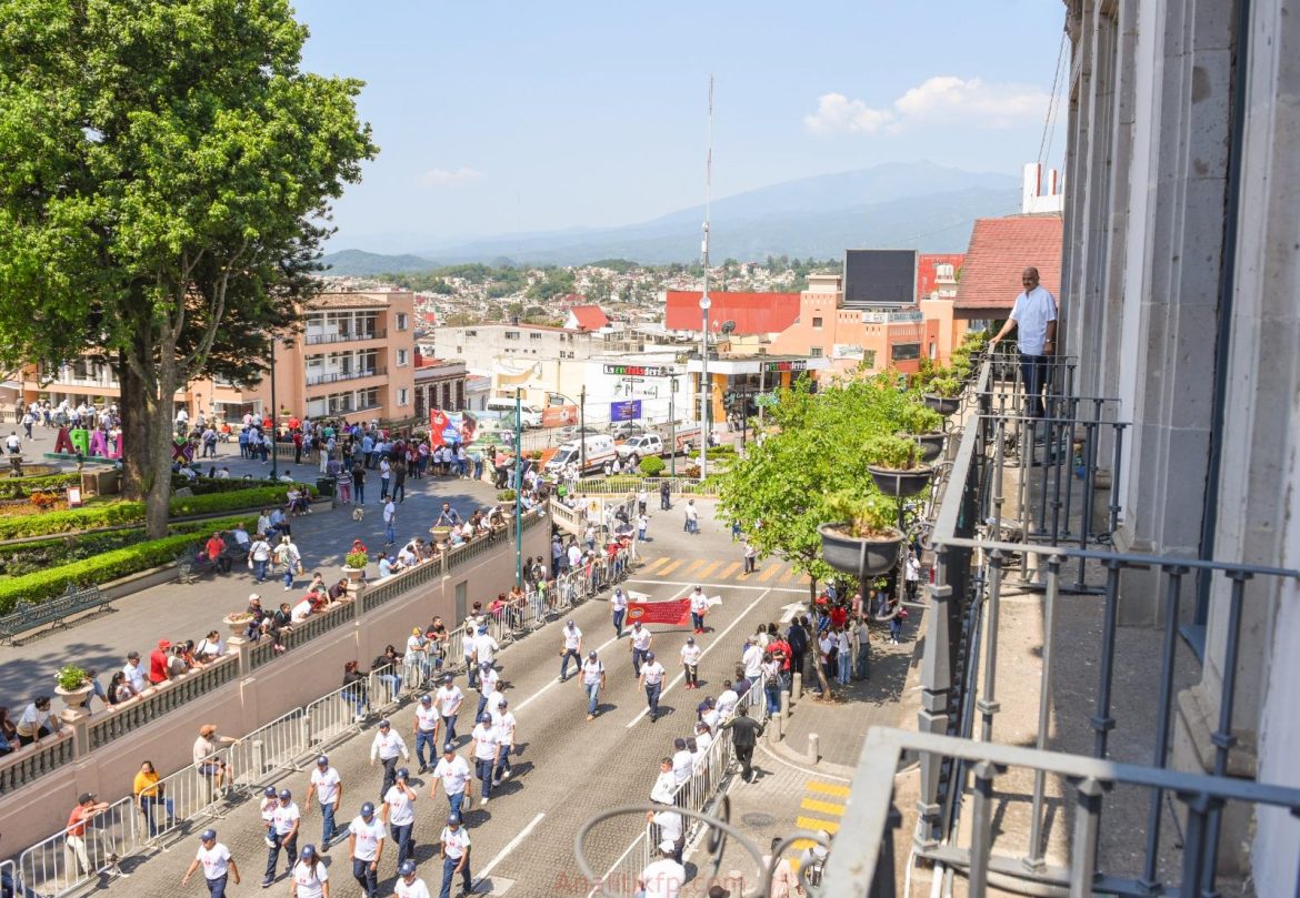Xalapa, Ver.- El alcalde Ricardo Ahued Bardahuil, presenció el desfile conmemorativo por el Día del Trabajo desde los balcones de Palacio Municipal, a donde invitó a algunas ciudadanas y ciudadanos para disfrutar de este evento.