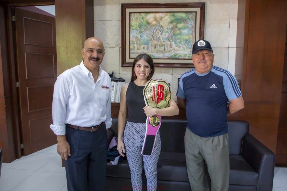 Xalapa, Ver.- El presidente municipal Ricardo Ahued Bardahuil recibió en su oficina a la deportista Katia Alejandra Alvarado Galindo, ganadora del Campeonato Absoluto Amateur de Cintas Blancas del Elite Submission League (ESL), uno de los torneos de Jiu jitsu brasileño más importantes de México.